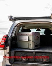 Big performance in a go-anywhere size. The myCOOLMAN 43L is a single-zone compressor fridge/freezer that chills fast, holds temperature in hot weather and is easy to carry and stow. Run it from 12/24V DC on the move or 240V AC on site. Set and monitor temps on the digital control panel or via the myCOOLMAN app. Inside, you get upright bottle storage, removable baskets and dimmable dual-colour (white/amber) interior lighting. On the outside, tie-down-rated carry handles, a low-profile cabinet, dual DC inputs and integrated bottle openers make day-to-day touring simple. 3-stage battery protection helps safeguard your starter or leisure battery, and Turbo mode speeds initial pull-down.