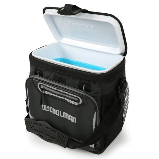 Grab a cold drink without fighting a zip. The myCOOLMAN 16-Can Zipperless Cooler (10 L) uses a flip-open, zipperless quick-access lid so you can ge...