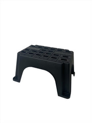Step up safely with the Milenco MGI Single Step. Designed for stability in all weather, it features a large non-slip tread (425 × 280mm), four rubber feet to prevent skidding on hardstanding, and peg holes for secure placement on grass.